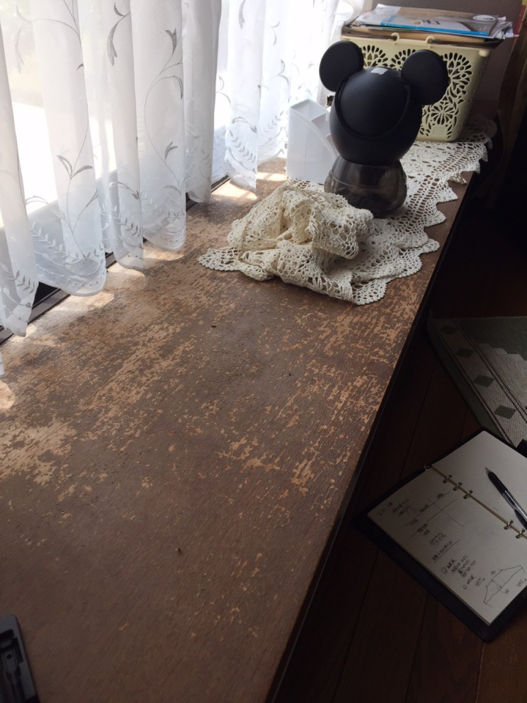・出窓カウンターの木が結露と日焼けによりボソボソになっているのでどうにかしたい。