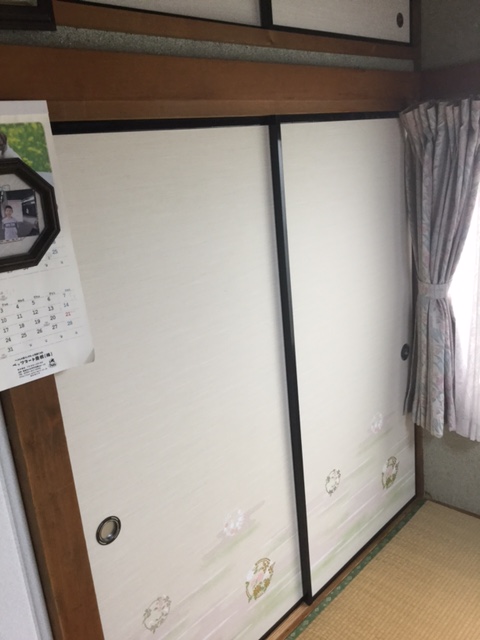 内容としましては、間仕切り4枚・押入れ4枚・天袋4枚・地袋2枚の張替えです。