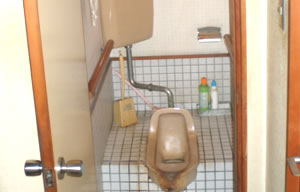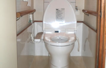 <アドバイザーのご提案> ・和式→洋式とすることで段差を解消し、立ち座りのラクな造りにしました。 ・床をクッションフロアとすることで、目地が無くなり、掃除も簡単になりました。 ・壁面は、目地の少ないパネル貼りとすることで、お掃除もグンとラクになりました。