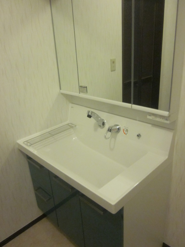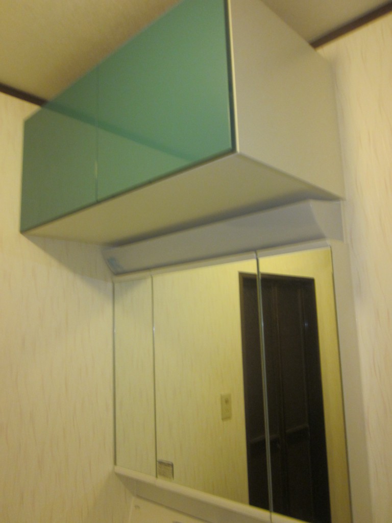 ・色は清潔感・爽やかさ感の色に統一するため、洗面化粧台取替えと一緒に内装工事もお勧めしました