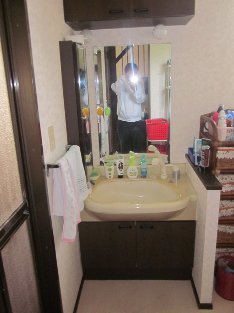 ・洗面化粧台の使いやすさを求め、右側の壁の撤去、洗面化粧台幅の拡張・ボウルの横にも物が置きやすいタイプに